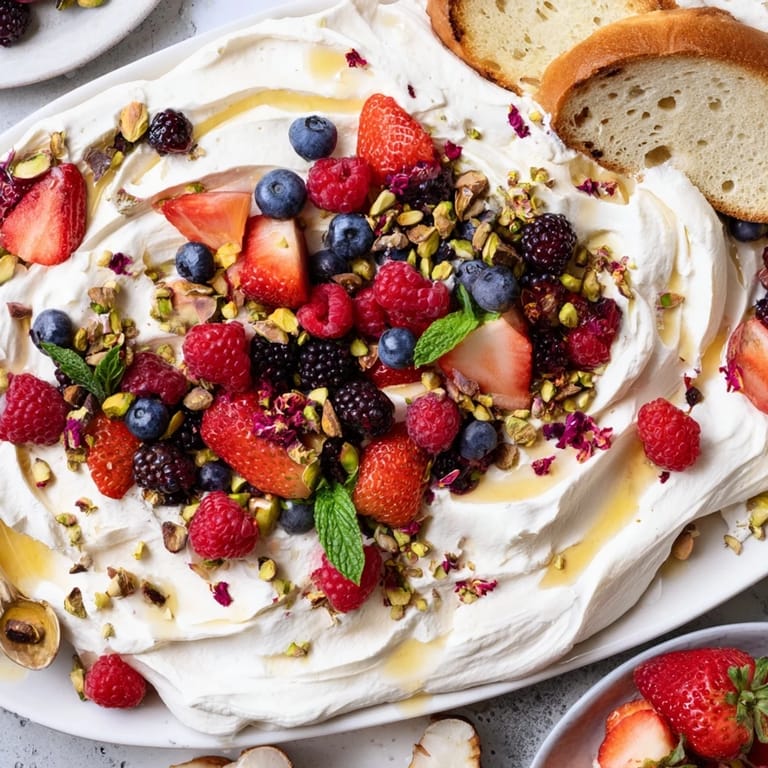 - Toppings: 150 g (1 cup) mixed fresh berries (strawberries, blueberries, raspberries, blackberries), 2 tbsp chopped toasted pistachios or almonds, 1 tbsp dried edible rose petals (optional), 2 tbsp mini chocolate chips or shavings, 2 tbsp granola (optional), 1 tbsp fresh mint leaves, torn