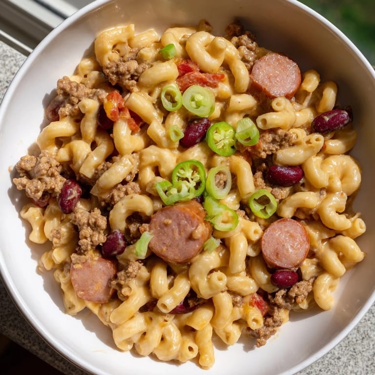 Pin it A comforting fusion of creamy macaroni and cheese, hearty chili, and classic hot dog flavors, this Chili Cheese Dog Mac & Cheese is perfect for a crowd-pleasing twist on two American favorites.