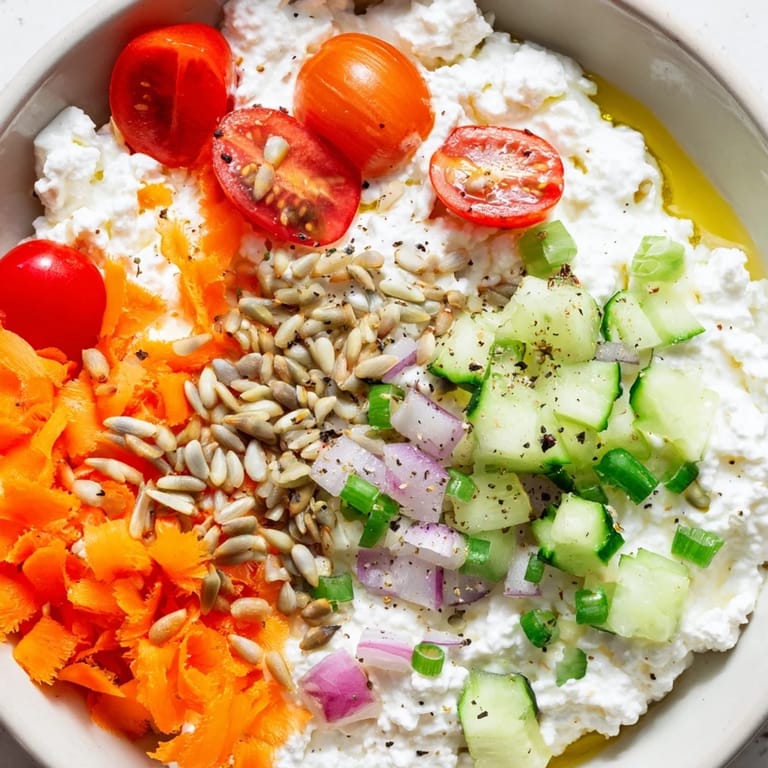 Pin it I stumbled onto cottage cheese bowls by accident one afternoon when I was rifling through my fridge, trying to salvage lunch from whatever I could find. A tub of cottage cheese caught my eye, and instead of dismissing it as breakfast food, I started layering—tomatoes, cucumber, a handful of seeds—and suddenly I had something that tasted nothing like diet food. It became my go-to when I needed something satisfying that wouldn't weigh me down, and I realized the magic was in how the creamy base held everything together while the vegetables kept things bright and crisp.