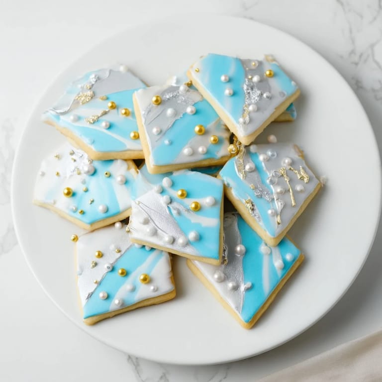- Royal Icing: 2 cups powdered sugar 2–3 tbsp milk 1 tbsp light corn syrup 1/2 tsp almond or vanilla extract Gel food coloring (silver, light blue, clear sparkle, etc.)