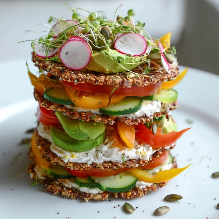 Pin it I'll never forget the first time I decided to build a tower of flavor instead of serving appetizers on a flat plate. It was a dinner party where my gluten-free friend felt left out of the fancy passed appetizers, so I spent an hour stacking crackers, bread, and vegetables into this architectural marvel. Everyone at the table stopped mid-conversation when I presented it—not because it was gluten-free, but because it was genuinely stunning. Since then, this tower has become my signature move, the dish that makes people lean in and ask for the recipe before they've even tasted it.