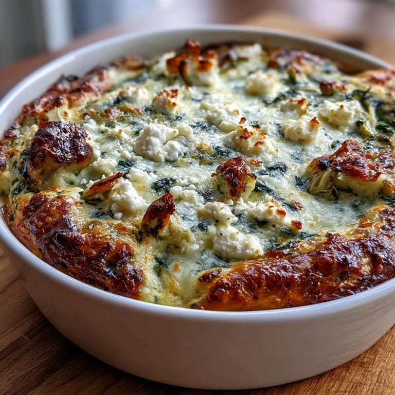 Pin it The snow had been falling for three hours when my sister knocked on my door, carrying a bag of groceries and that particular look that means she needs comfort food. We'd both been attempting to eat more protein, but the usual chicken breasts were feeling impossibly tedious. I pulled out everything I could find that might work together, and somewhere between the spinach draining in a colander and the feta crumbling into the bowl, we realized this might actually be brilliant. It came out bubbling and golden, and we ate it standing at the counter while snow piled up outside.