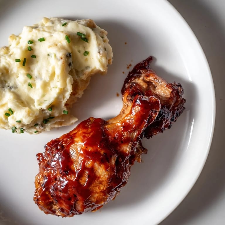 Pin it Succulent oven-baked chicken thighs glazed in a sticky honey BBQ sauce, served with creamy garlic mashed potatoes for a comforting and flavorful meal.