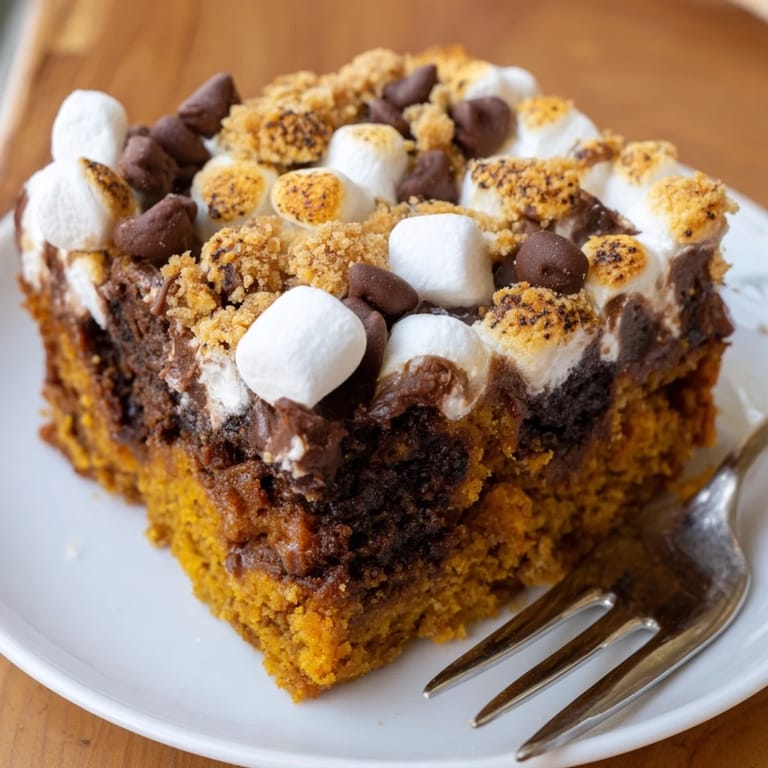 Pin it A delightful fusion of spiced pumpkin muffins and classic s'mores, these bars feature a moist pumpkin base, gooey chocolate, and toasted marshmallows for a cozy, crowd-pleasing treat.