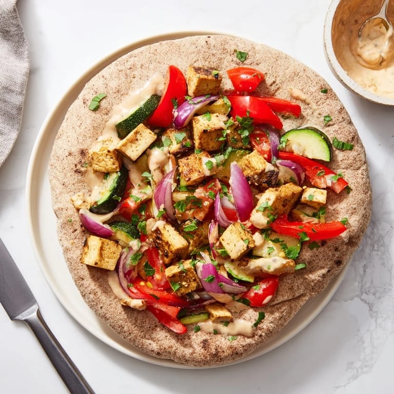 - Warm wraps or pita breads. Fill each with roasted tofu, vegetables, drizzle with sauce, and sprinkle with parsley.